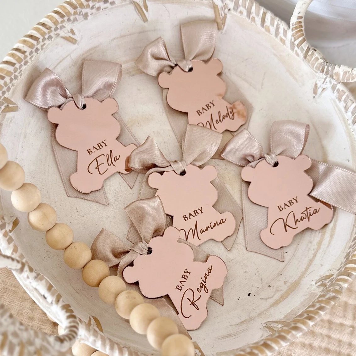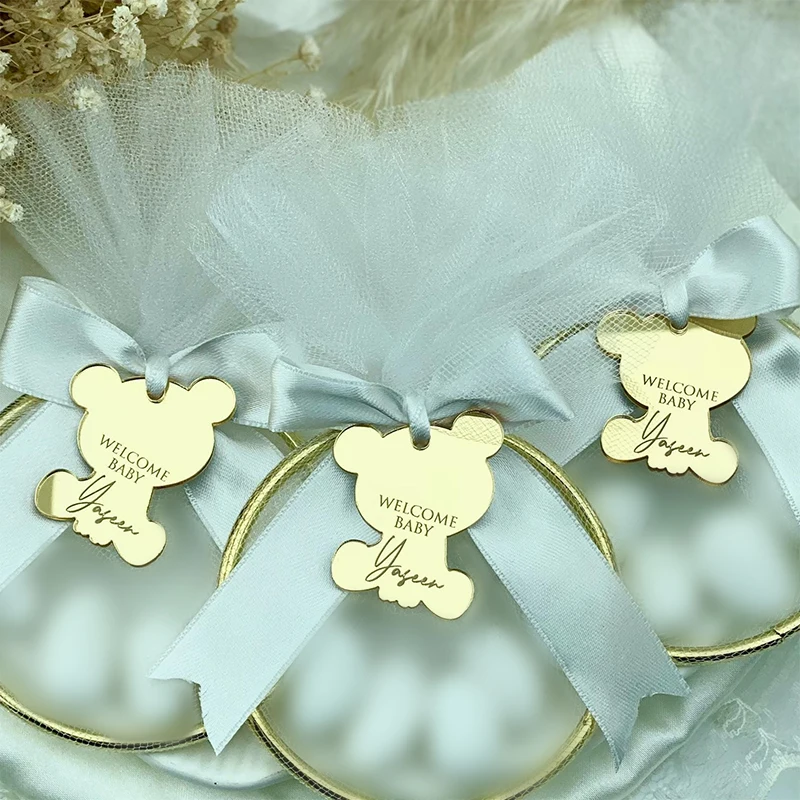 20/50/60/70/80/100pcs Personalized Bear Acrylic Mirror Tag Baby Shower Tag Gift Bear Birthday Bear Tag Baby Name