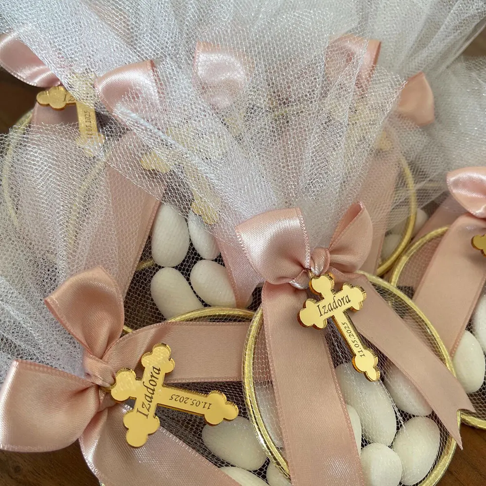 Customized Cross Baptism Label Gold and Silver Rose Gold Acrylic Mirror Blessing Label Lettering Name Baptism Gift Decoration