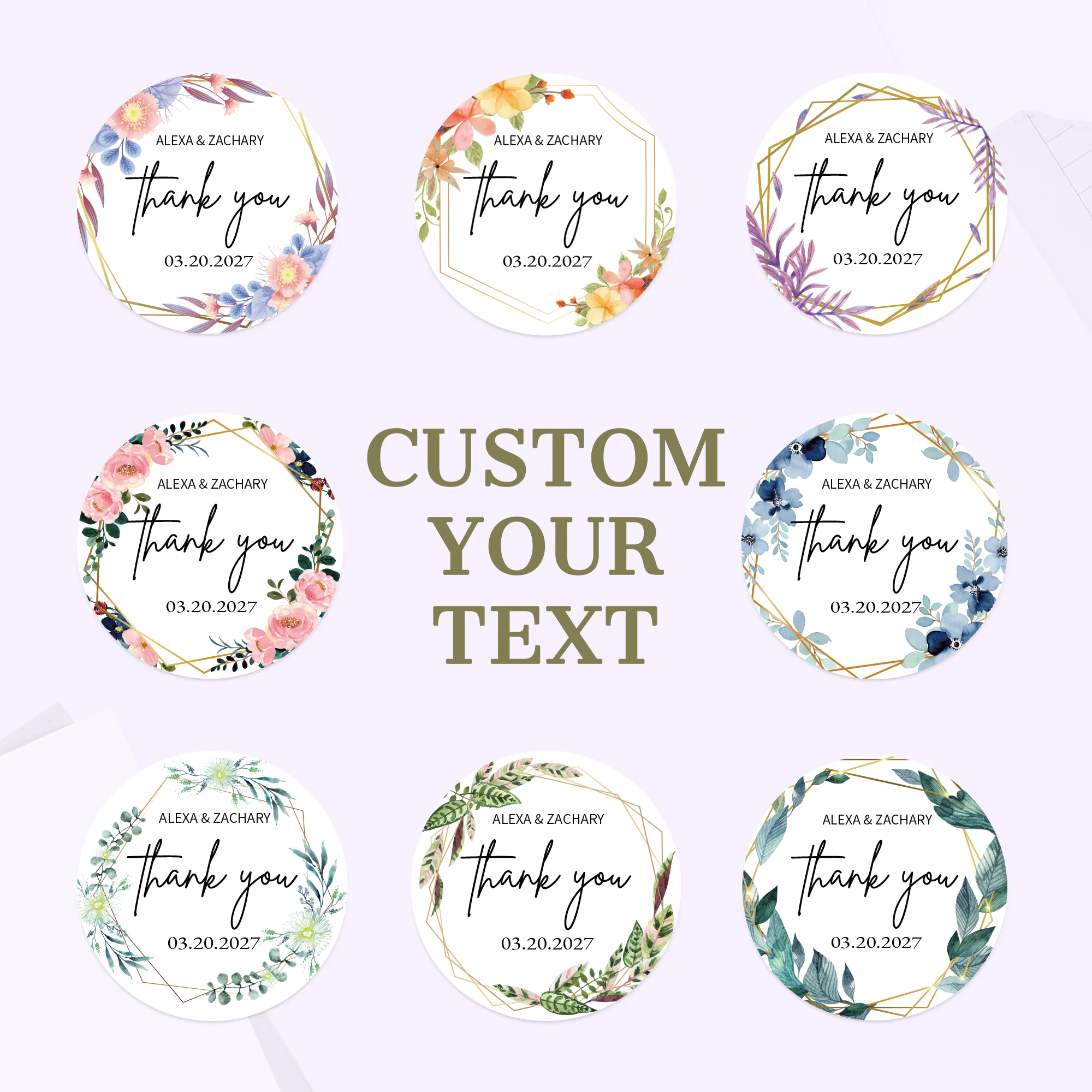 Custom Stickers for Wedding Round Custom Logo Labels of Flower Waterproof Personal design Stickers for Birthday,Gift Packaging