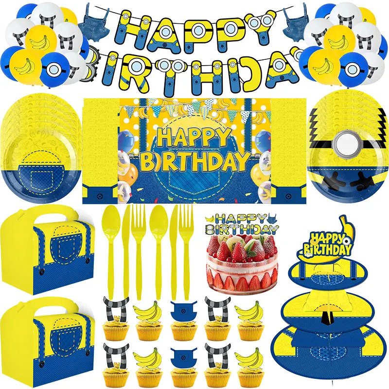 Tableware Kit Birthday Party Decoration Paper Plates Cups Plates Hanging Spiral Banner Cake Toppers For Children Event Supplies