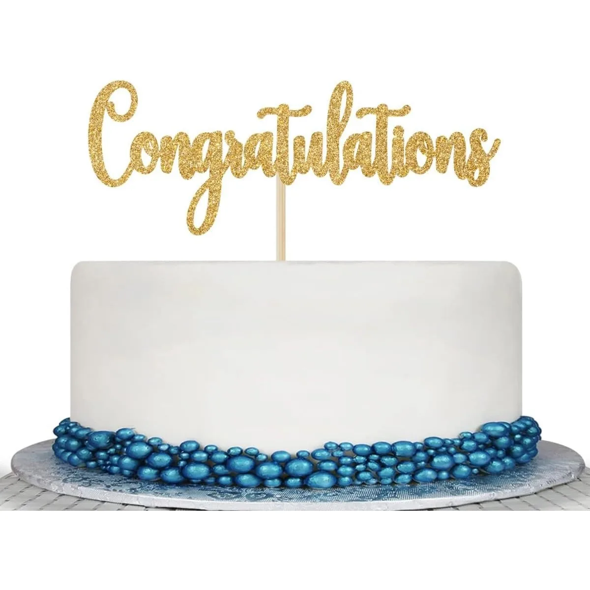 1pc Gold Glitter Congratulations Cake Topper - Congrats Cake Topper,Graduation, Wedding, Retirement, Birthday, Anniversary
