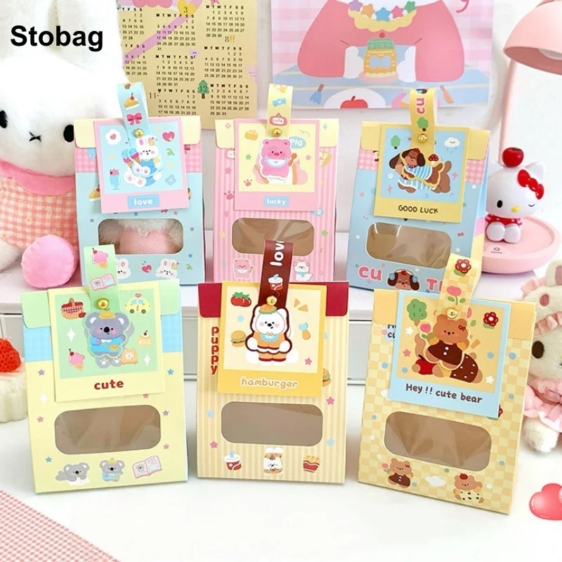 StoBag 20pcs Cartoon Kraft Paper Candy Tote Box with Window Gift Kids Child Cute Small Packae Cake Storage Birthday Party Favor