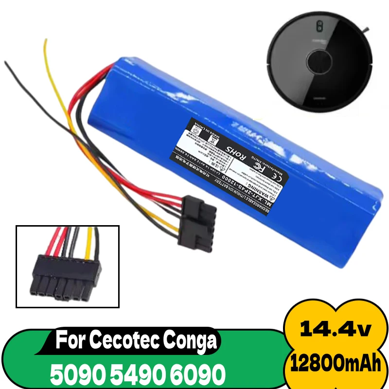 New 14.8V 12800mAh INR18650 MH1-4S2P-300S Robot Battery for Cecotec Conga 5090 5490 6090 Robotic Vacuum Cleaner