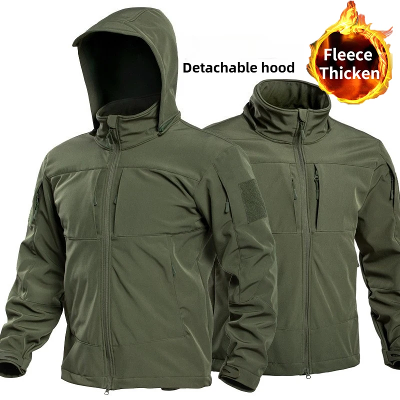 Men's Special Ops Military Tactical Soft Shell Winter Warm Fleece Lined Jacket Detachable Hood Coat Hiking Snowboard Windbreaker