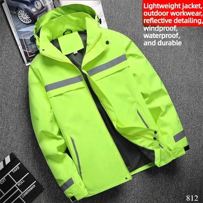 Lightweight Hooded Work Jacket, Waterproof Abrasion Resistant Reflective Outdoor Windbreaker
