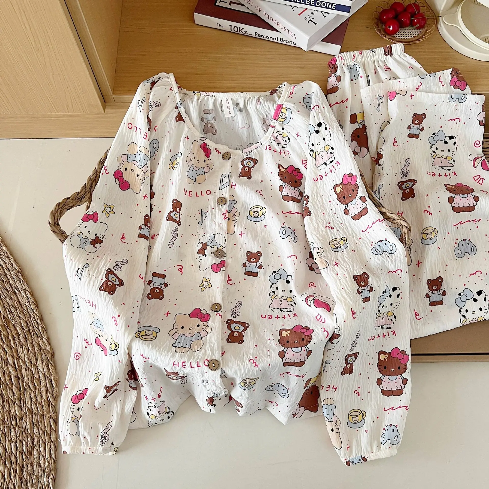 Hello Kitty Cloud Cotton Kt Bear Sweatshirt Women's Autumn/winter Long Sleeve Round Neck Cardigan Cartoon Premium Homewear Cute