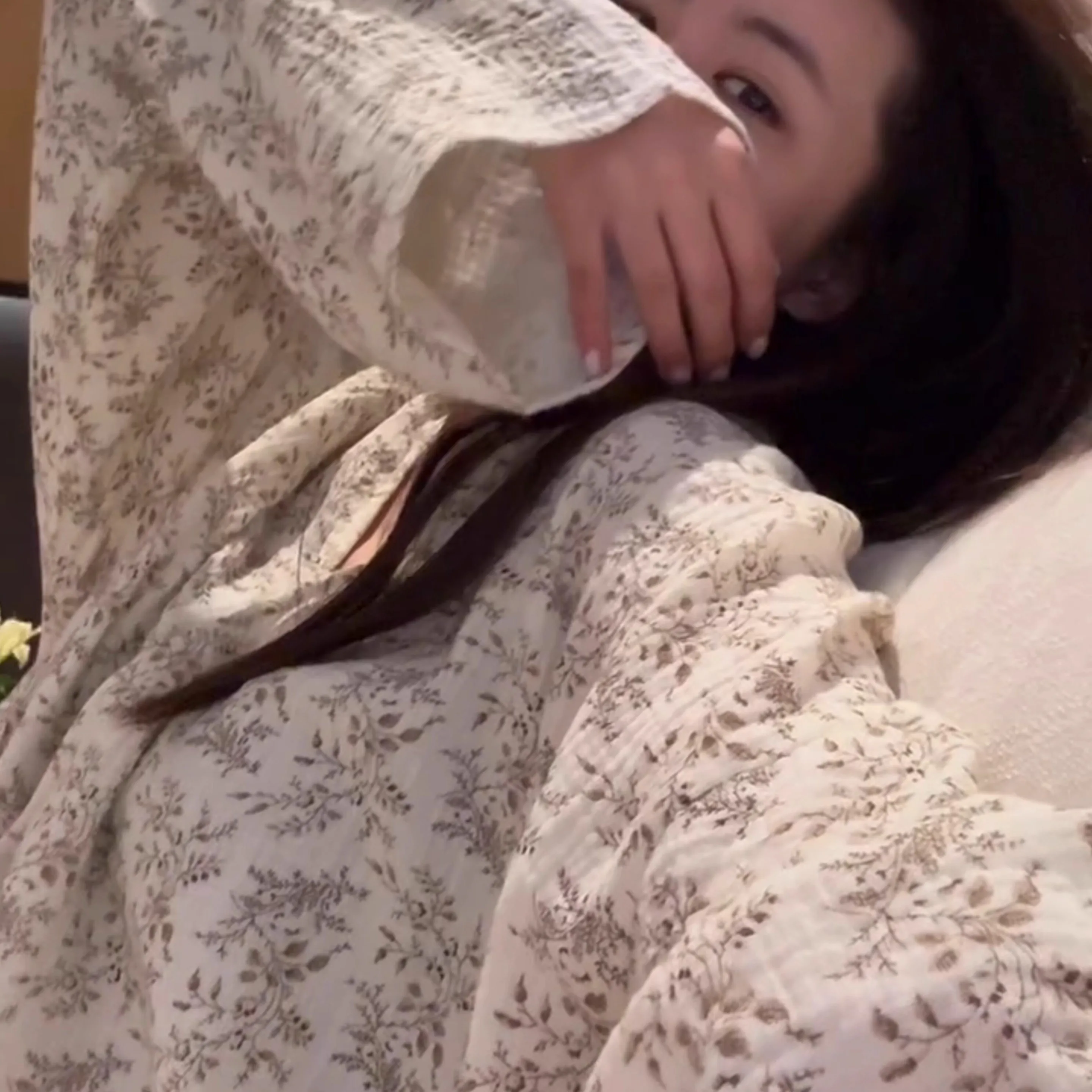 Spring Autumn Large Size Floral Print Long Sve Spwear Women's Sweet Home Clothes Set Comfortable Cloud Cotton V Ne Op...