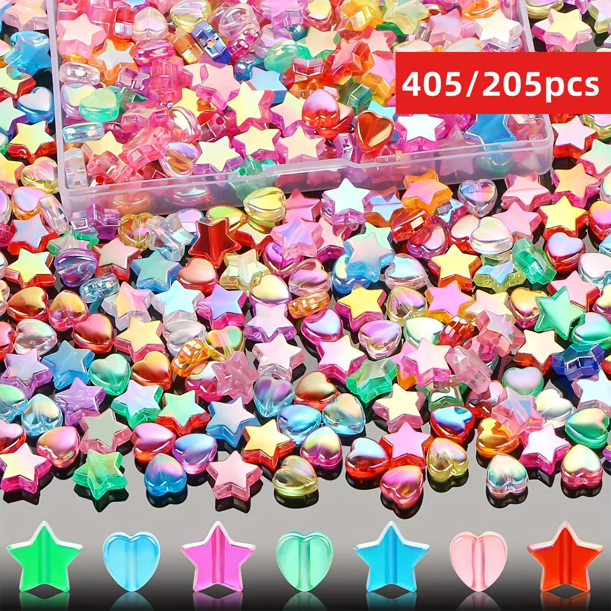 405/205pcs AB color Random color 10mm pentagram 9mm peach heart mixed style, can be used as couple bracelets, DIY jewelry