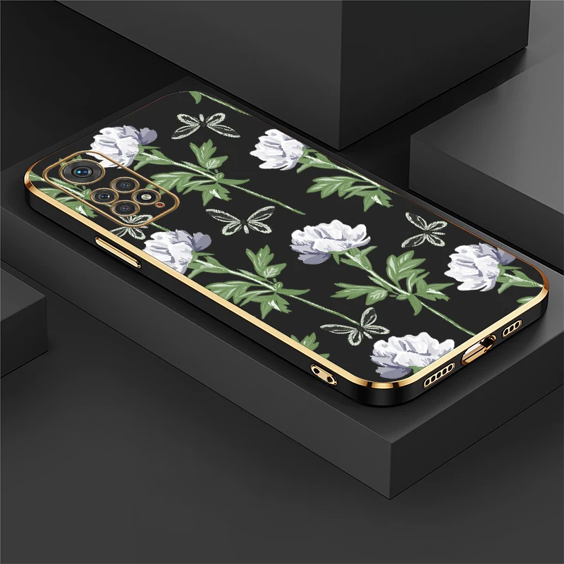 Phone Case For Xiaomi Redmi Note 10T 10 Lite 10S 11 4G 11S 11E 11T 8 9 Pro Max 9S Fashion Flower Pattern Plating Soft Cover