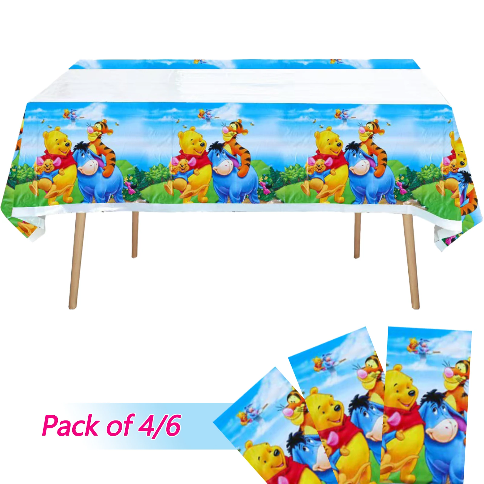 4/6pcs Winnie the Pooh Tablecloth Birthday Party Decoration Table Cover Tableware Girls Favors Themed Party Decor Supplies Gift