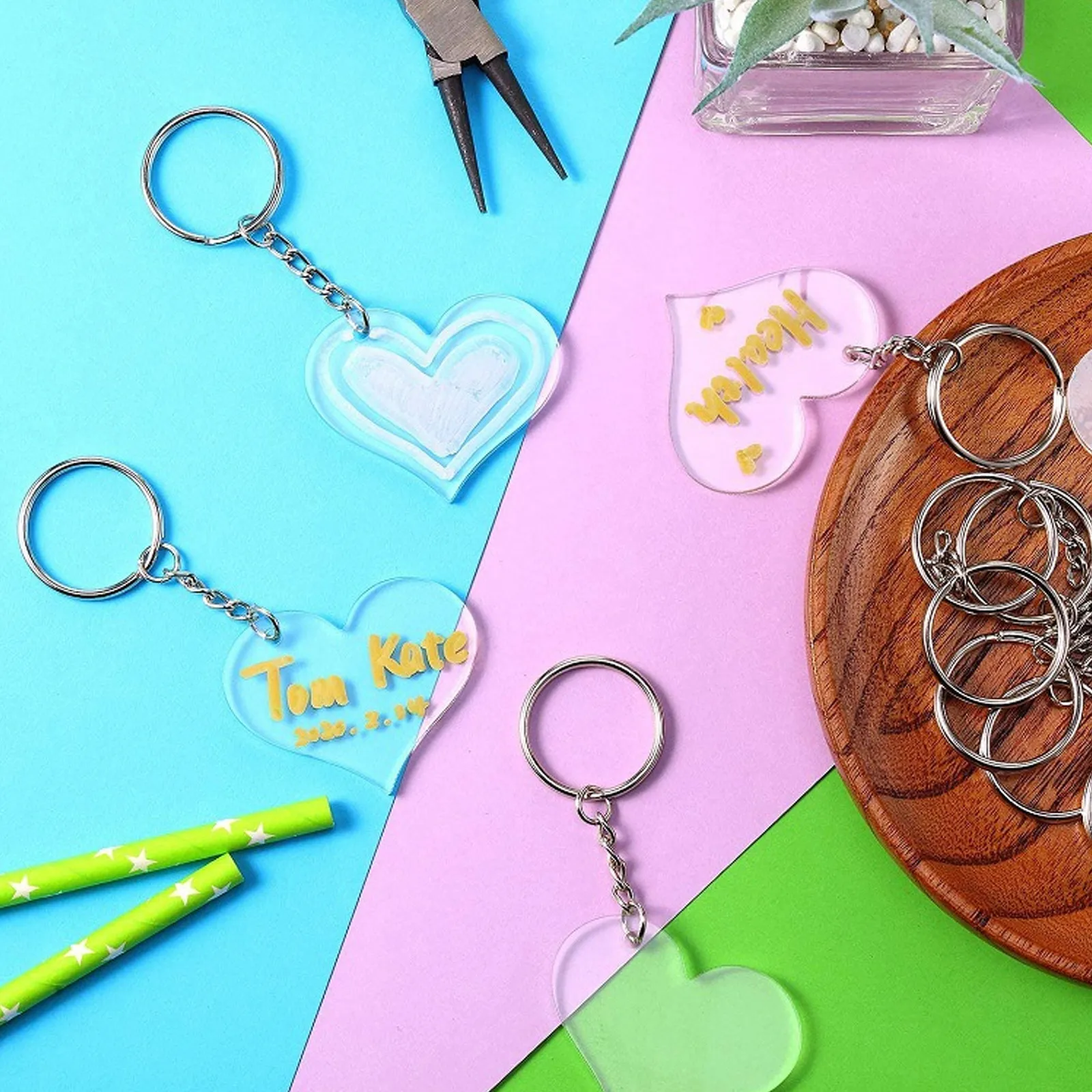 60Pcs Heart Shaped Acrylic Pendant Blank Keychain Accessories Hole for DIY Crafts Key Holder Supplies Acrylic Keychain Pendant