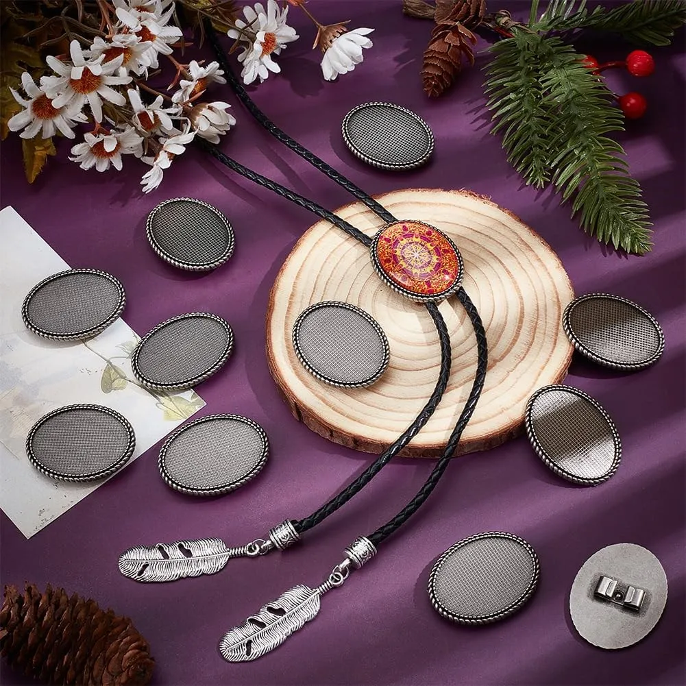 CYL-Blank Slider Clasp Bolo Tie Buckle 12 Pcs Alloy Oval For Crafts Clothes Findings Cabochon Settings B