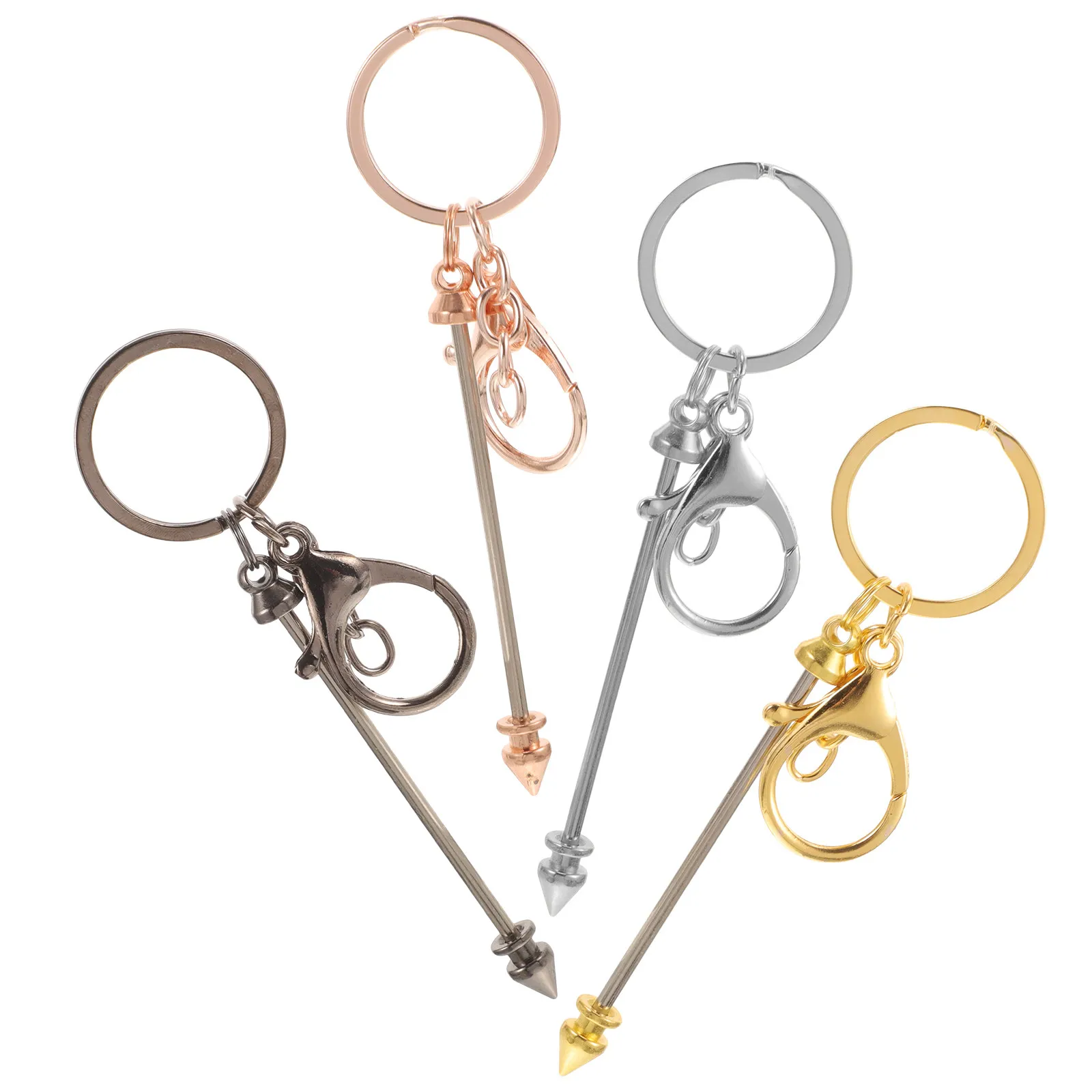 4pcs Metal Keychain Unfinished Beaded Bar Diy Craft Key Ring Reusable Beadable Blanks For Jewelry Handbag Decor Accessory