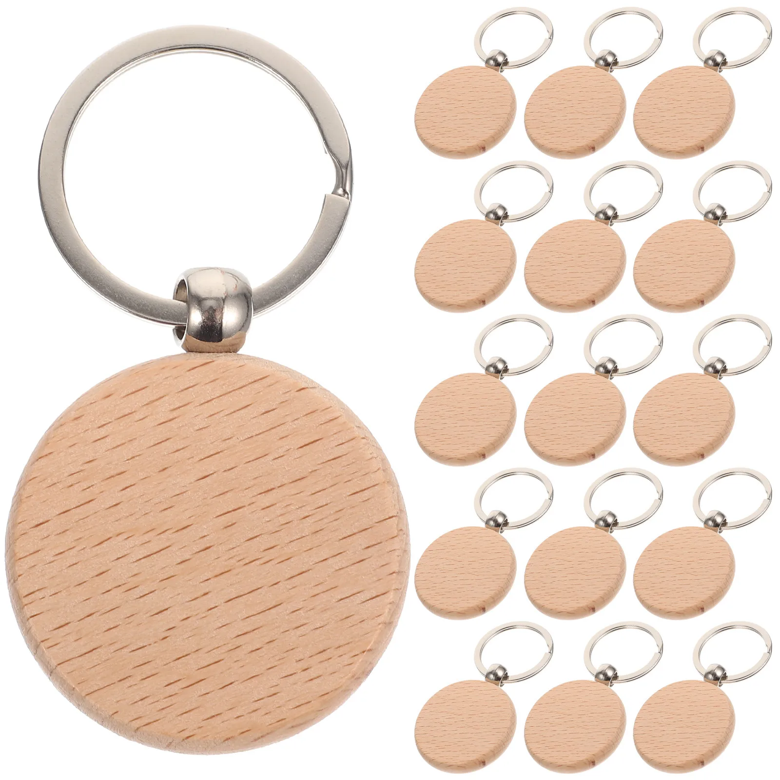 30Pcs Wood Keychain Blanks Beech DIY Key Ring Crafts Supplies Rustic Keychain Blanks for Custom Gift Making Wooden Key Holder
