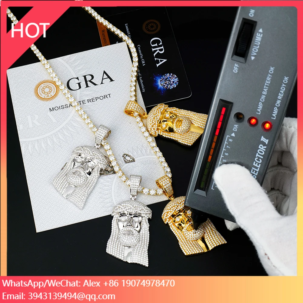 Wholesale Custom Men 925 Silver Bling D Vvs Mossanite Moissanite Diamond Iced Out Jesus Piece Pendant For Tennis Chain Necklace