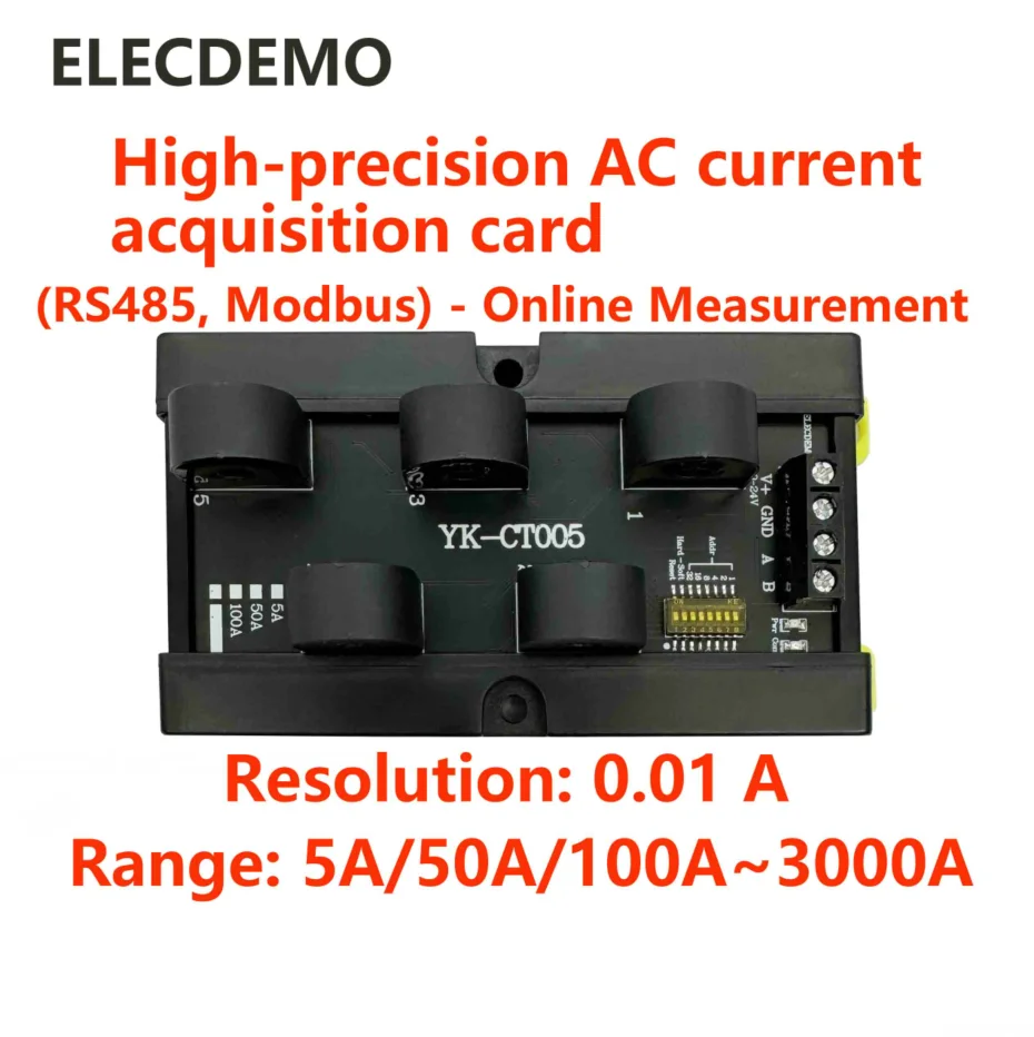 Multi-channel AC capture card, 0-50A current detection transmitter acquisition module, RS485modbus transformer, 5 channels