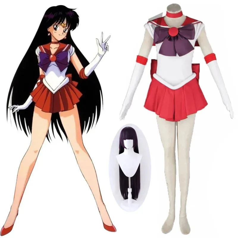 Anime Rei Hino Sailor Mars Cosplay Costume Dress Gloves Bows Necklace JK Uniform Custom Made For Adult Plus Size 2MN40