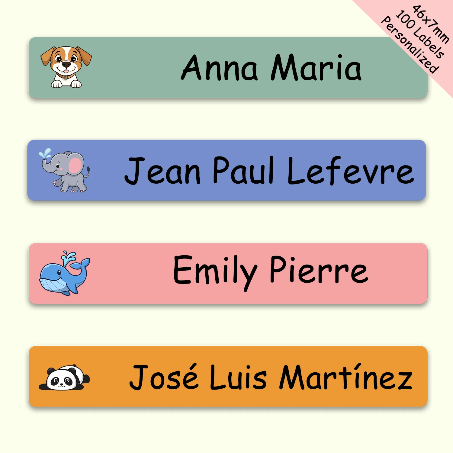 100pcs Personalized Pencil Name Labels Kids Cute Animals Waterproof Peel Stick Stickers Custom School Daycare Camp Nursery Tags