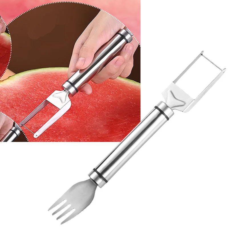 2-in-1 Stainless Steel Fruit Cutter,Dual Head Watermelon Fork Cutter Slicer Tool for Home Kitchen Gadget Melon Cube Cutter