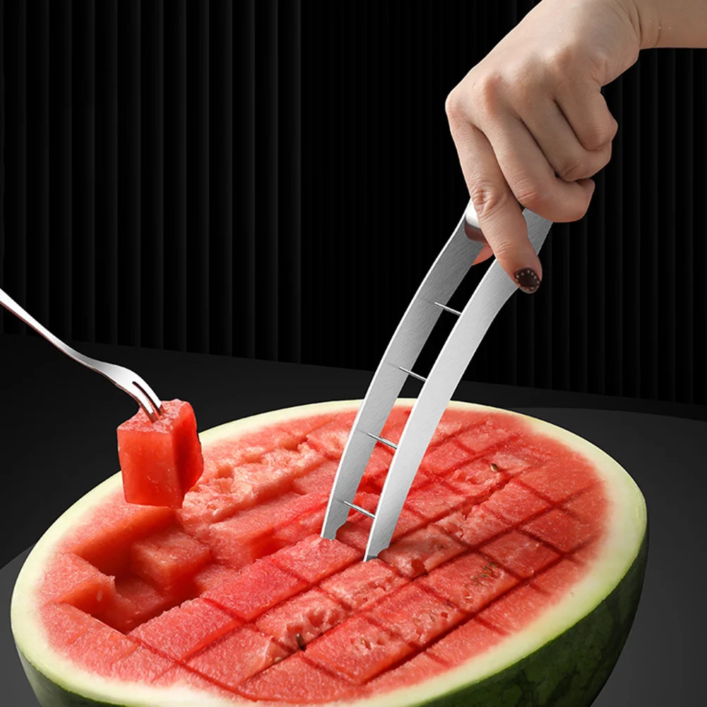 Multi-purpose Portable 2In1 Watermelon Slicer Fork Watermelon Slicer Cutter Knife Stainless Steel Kitchen Fruit Cutting Fork