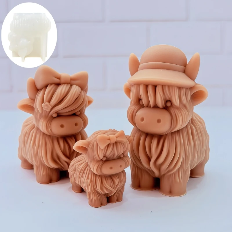 3pcs/set Cute Cow Candle Silicone Mold Wearing Hat Cow Dad Shape Resin Mould Smile Honest Bow Yak Mom Gypsum Molds Gift