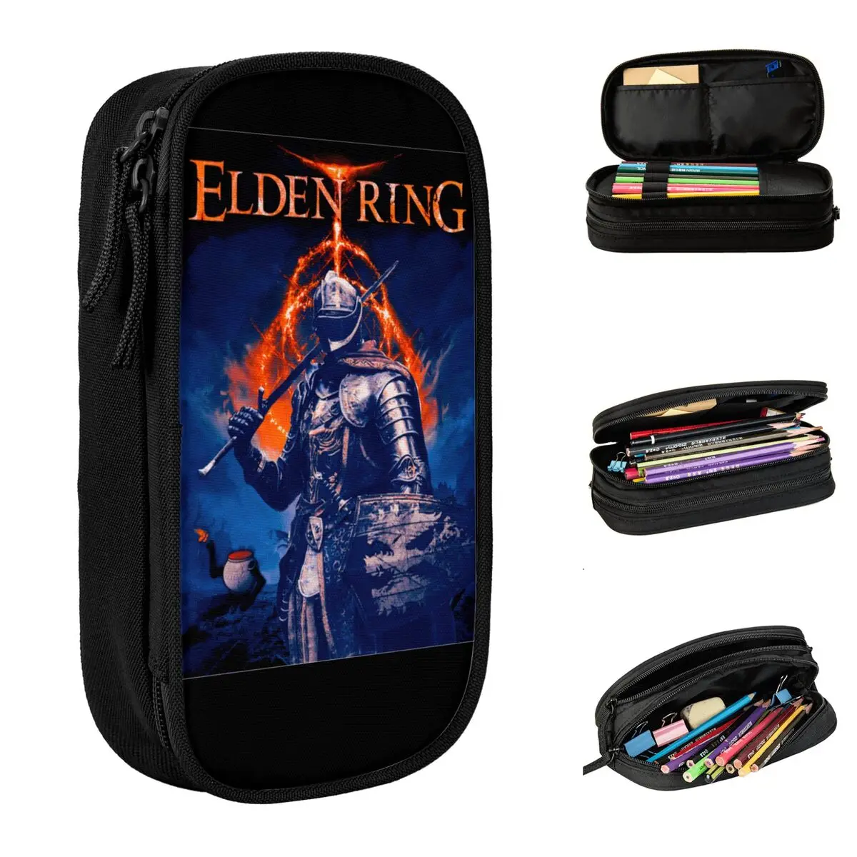 Elden Ring Pencil Case Undead Knight Dark Souls Games Pencil Box Pen Box for Student Bag Students School Zipper Stationery