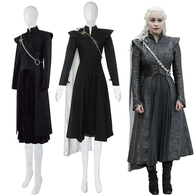 Daenerys Targaryen Cosplay Costume Movie Characters Dress Season 7 Black Outfit Robe Halloween Carnival Uniforms for Women