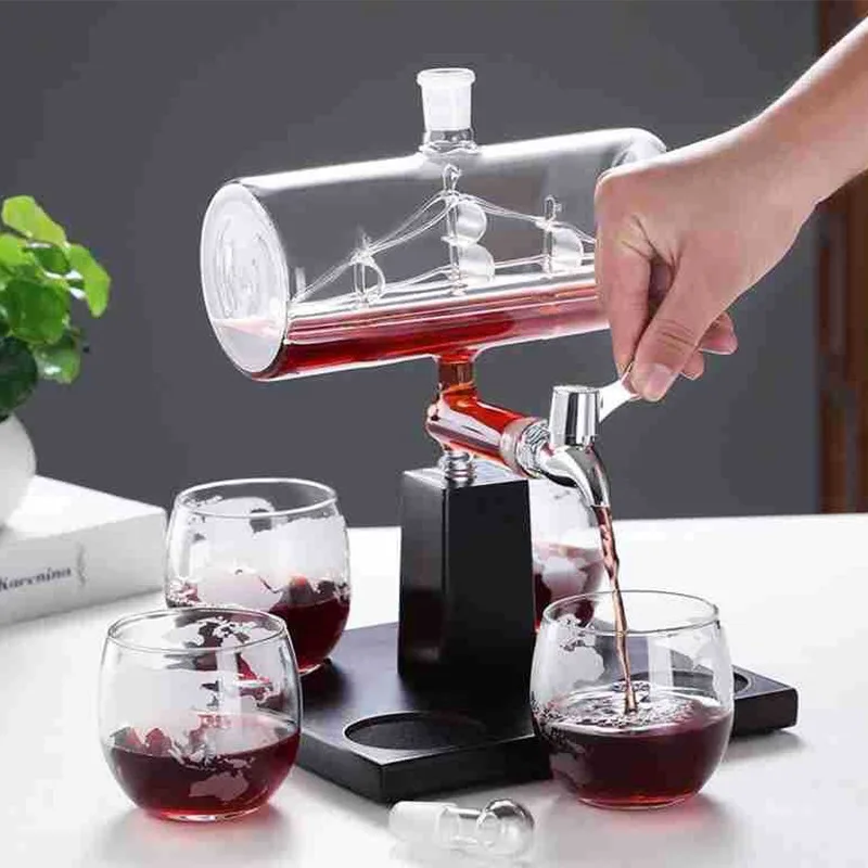 Sailboat Wine Barrel Decanter with Spigot Whiskey Vodka Red Wine Dispenser Home Bar Gifts