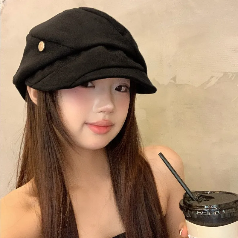 Retro Korean Sle Women's Beret Hat Summer Face Slimming Newsboy Cap Large Head Size Octagonal Painter Hat Casual Sle