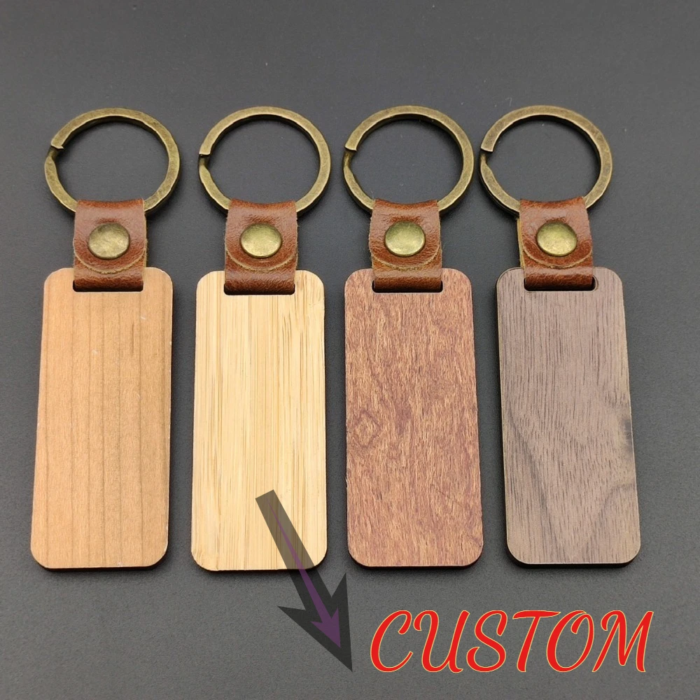 New Hit Custom Design PU Wooden Keychain Logo Leather Solid Wood Keyring Key Accessories Chain Men's and Women's Wooden Gift