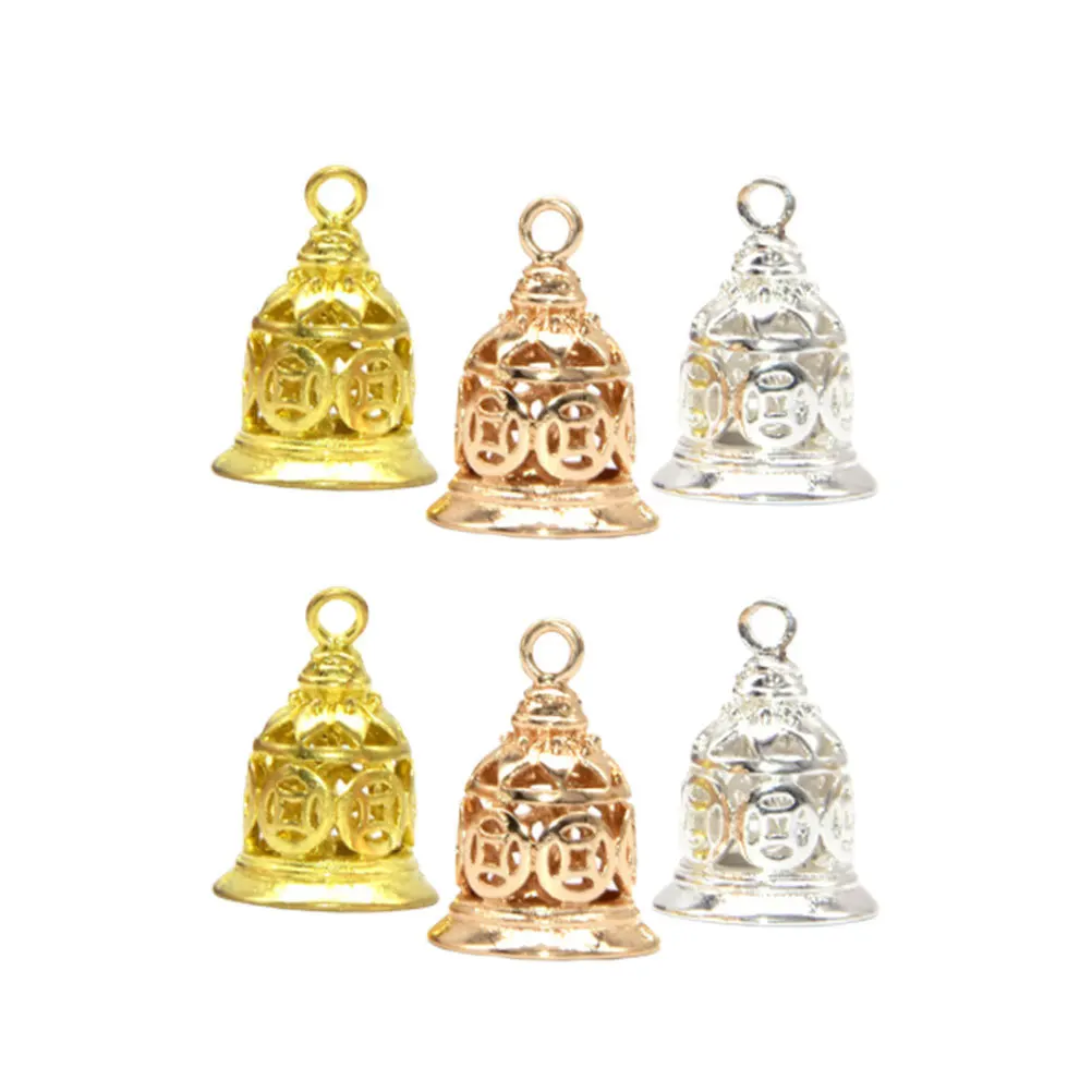 6Pcs Copper Money Bell Hollow Carving Design Lucky Wealth Charm Pendant for DIY Jewelry Keyring Ornament Festival Decoration