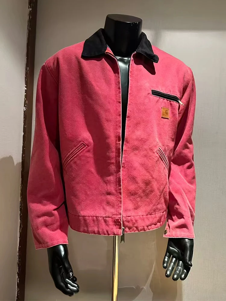 Pink American Retro Detroit Jaet Men's ort Sle Workwear Vintage Outerwear Casual Loose Fit Regular Length No Cap