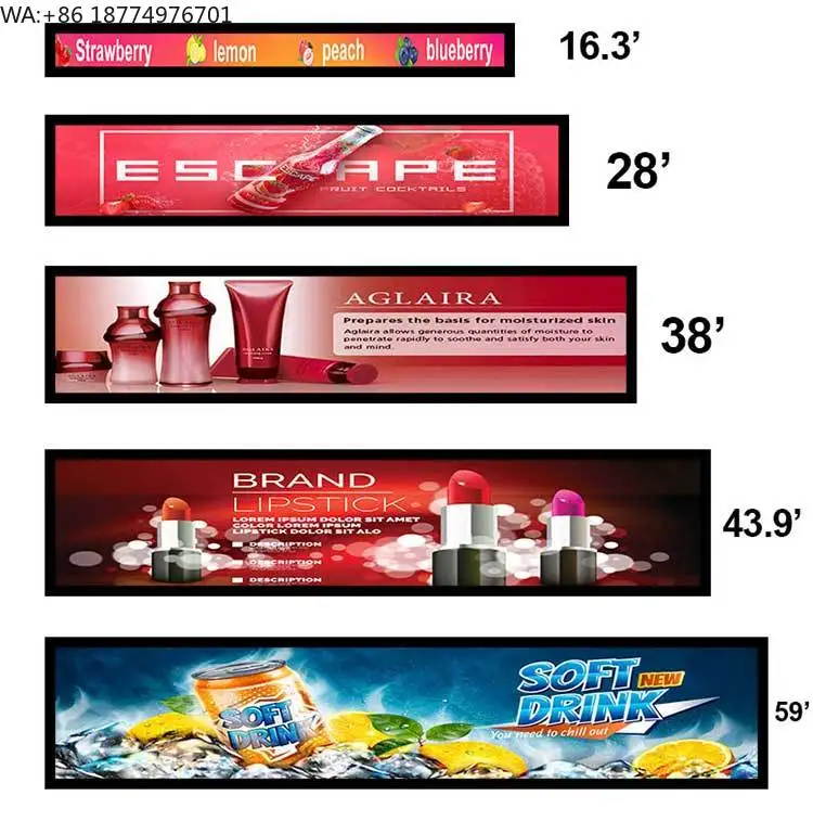 Indoor Full Color Screen Digital Signage Advertising Player Shelf Edge Ultra Wide Shelf Led Display Screen