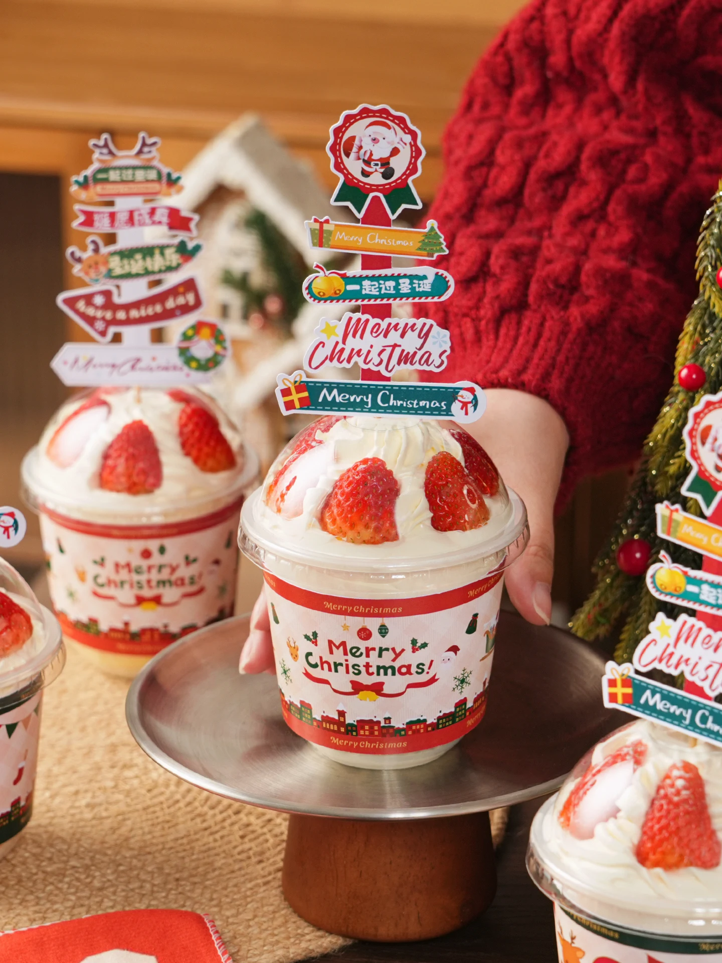 Cisas Stberry Cake Disposable U-aped Dert Yogurt Hug Cup Beverage Decoration with Lid Baking Kitchen Utensils