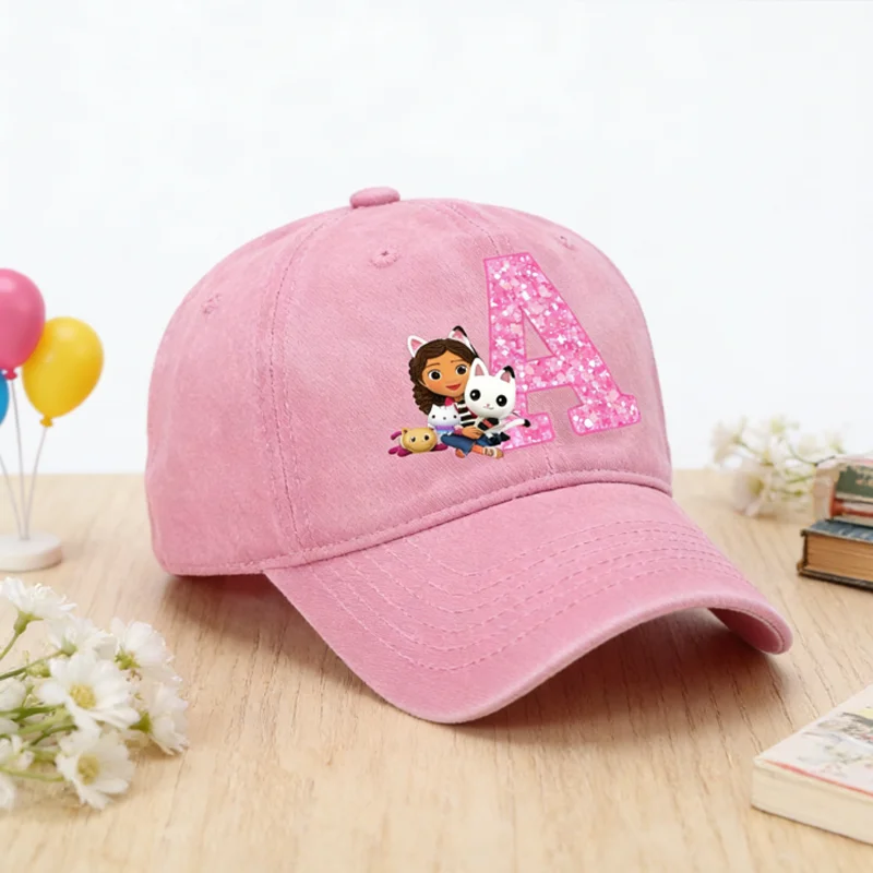 Gabby Dollhouse Cap Wash Distressed Hat Cartoon Anime Figure A-Z Letters Caps Cotton Breathable Pink Headdress Birthday Gifts