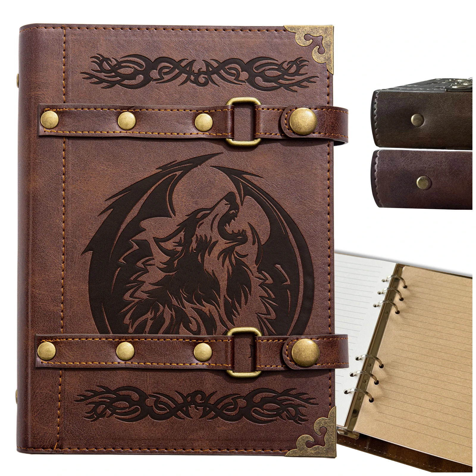 DND Journal 400 Page Book with 3D Dragons Leather Refillable 6-rings binder and Bookmark for dungeons and dragons D&D Notebook