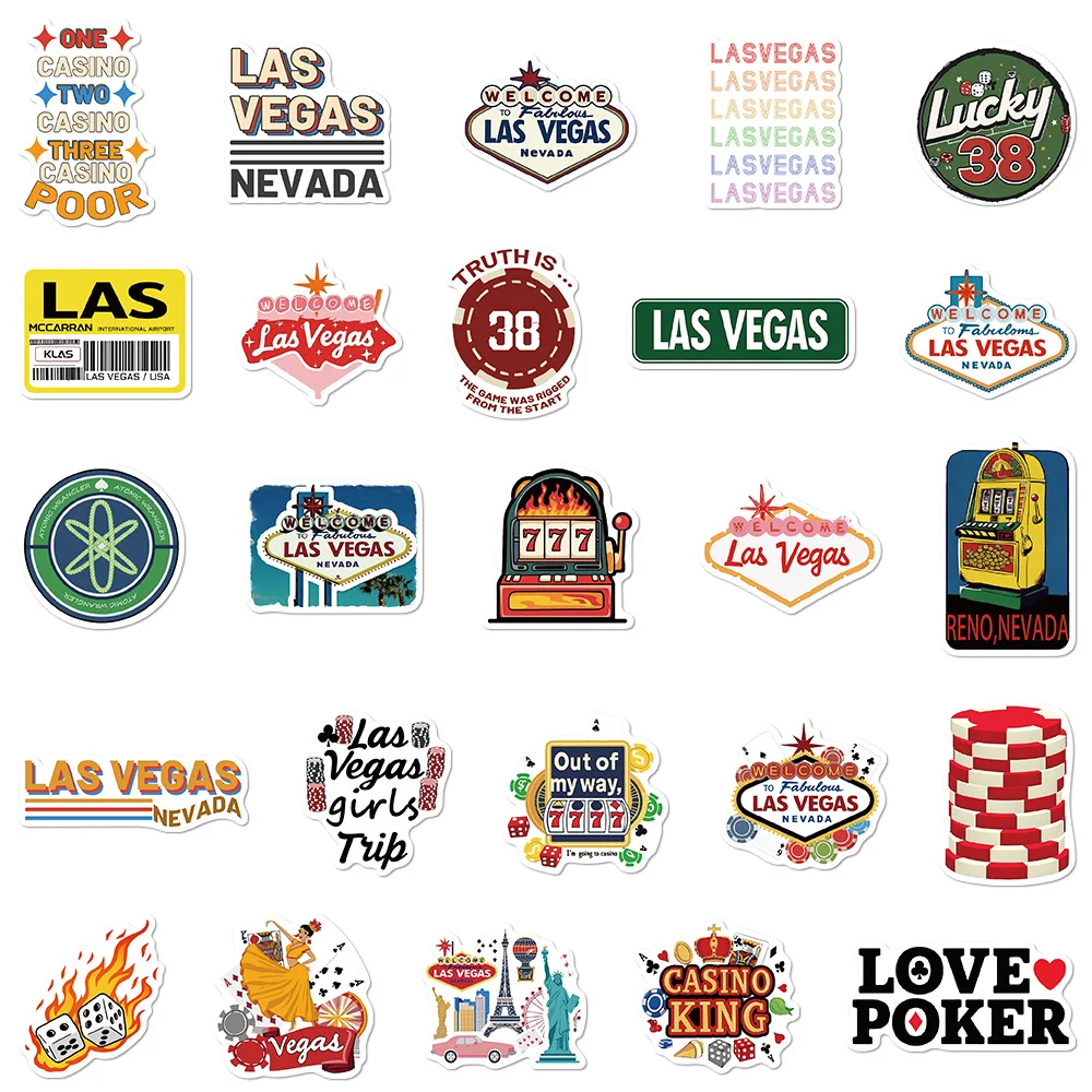 50Pcs Las Vegas Stickers Lucky Las Vegas Dice Stickers Decoration Scarpbook Skateboard Laptop Notebook Waterproof Stickers