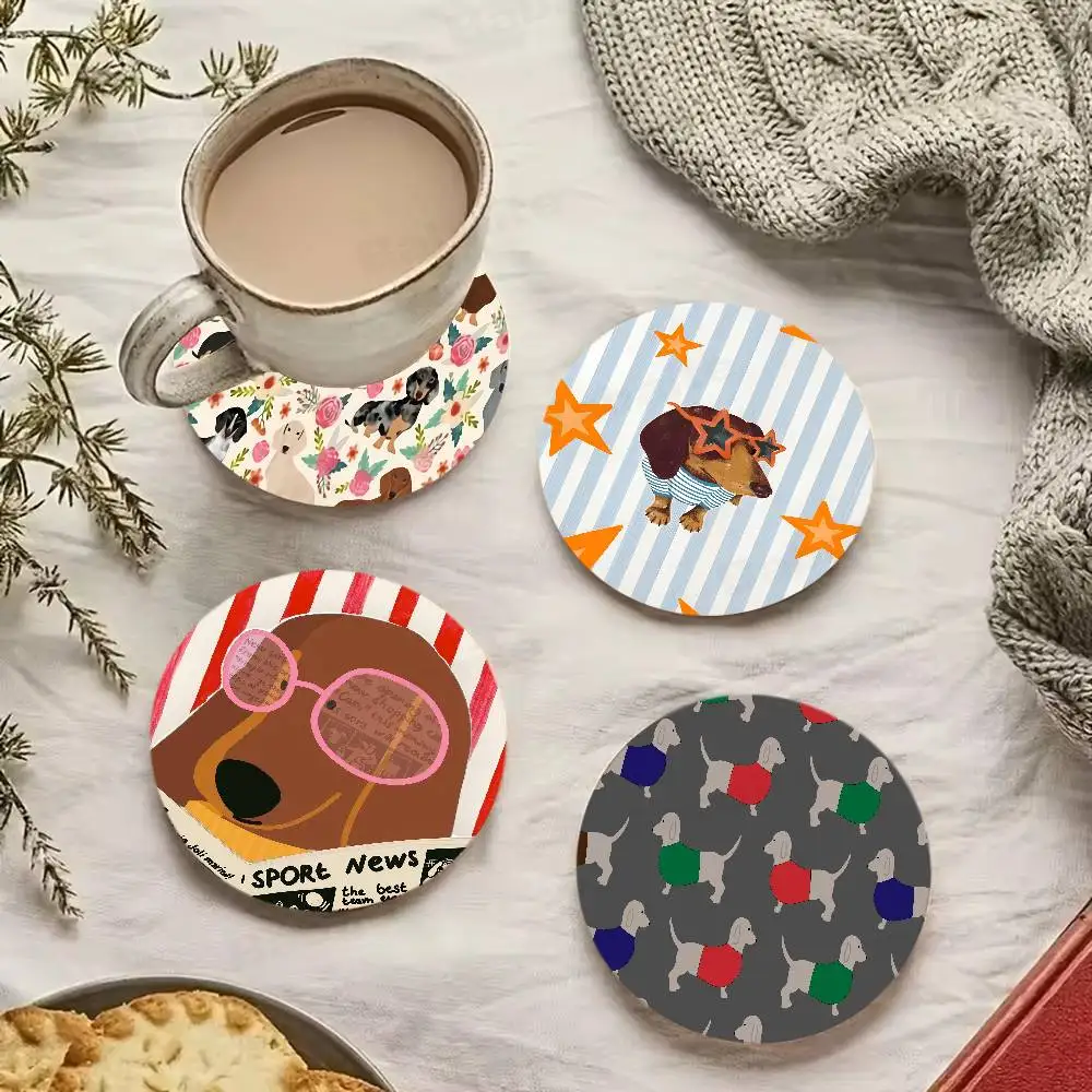 Cartoon Dachshund Wood Coaster 4pcs/set Cute Unique Craft Coaster Dog Lover Gift For Home Decor Home Table Decoration Novelty