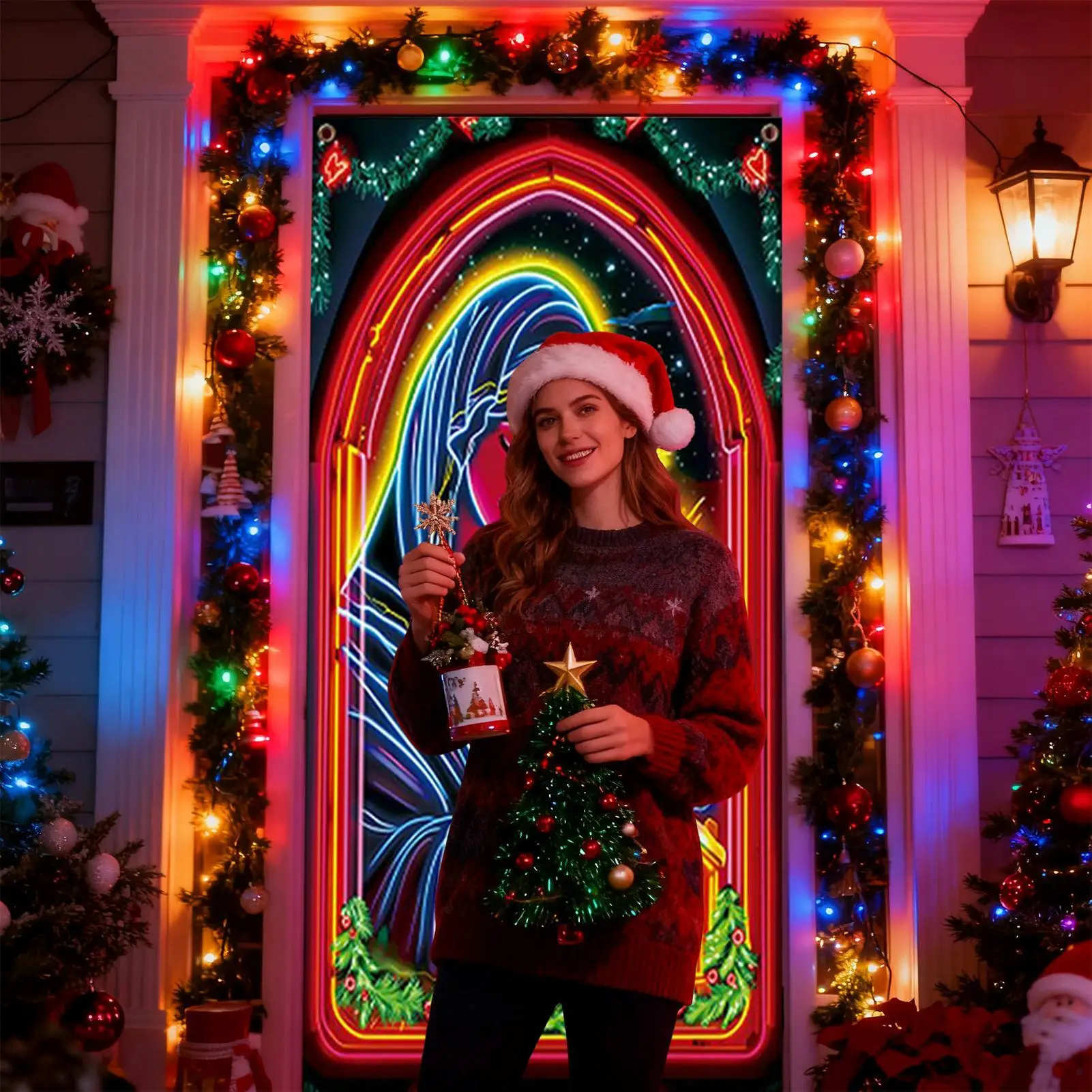 Christmas Front Door Decoration Cover Large Fluorescent Fabric Jesus Scene Covers Christmas Porch Sign Banner Decor For Indoor
