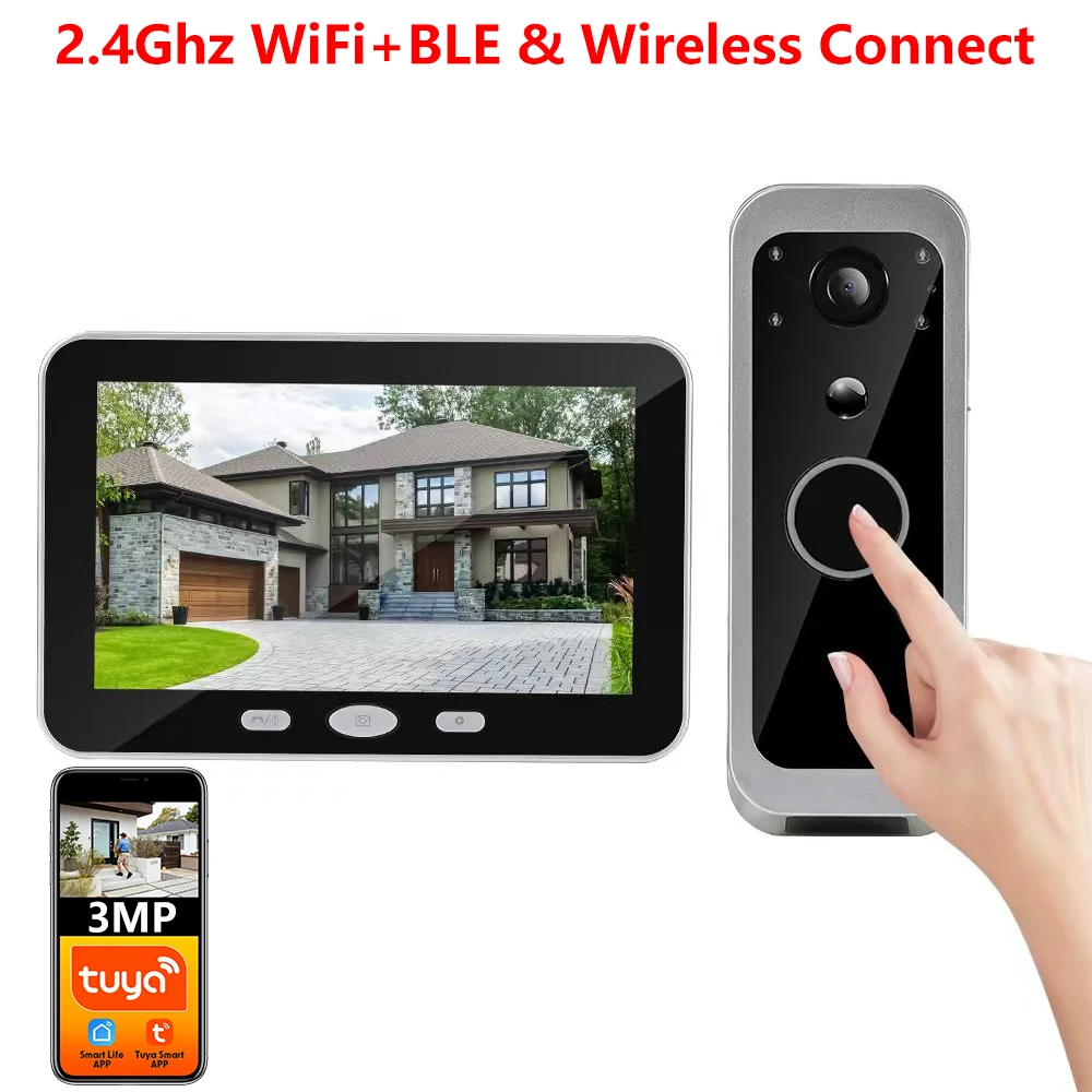 3MP Tuya SmartLife Wireless Outdoor WiFi Audio Video Door Phone Intercom System Doorbell Camera with 5'' Portable Monitor Screen