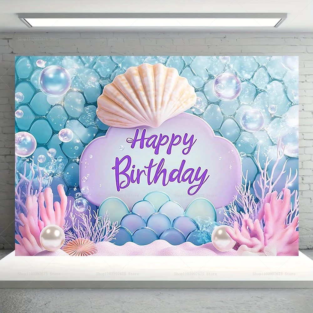 Mermaid Party Backdrops Children's Happy Birthday Decor Photographic Underwater World Shell Pearls Background Baby Shower Banner