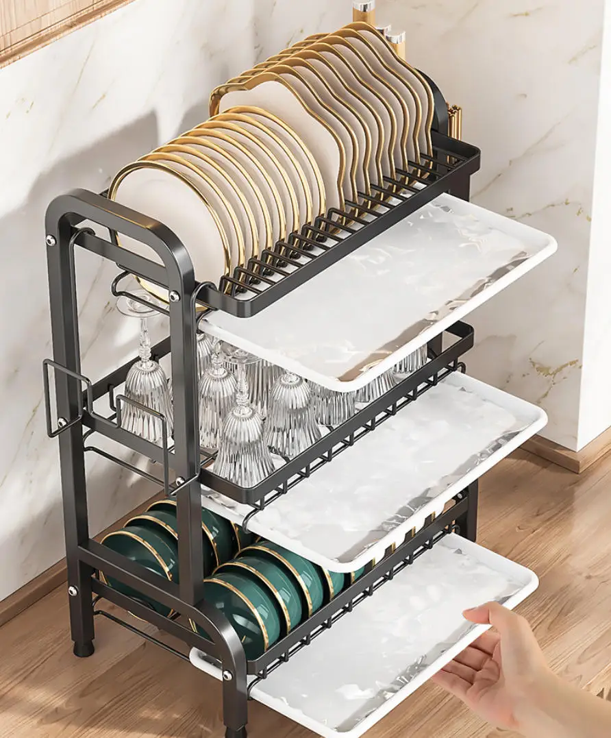 3-in-1 Kitchen Soap Dispenser Stainless Steel Cutlery Holder Spoon Storage Kitchen Organizer Drainer Dish Drying Rack