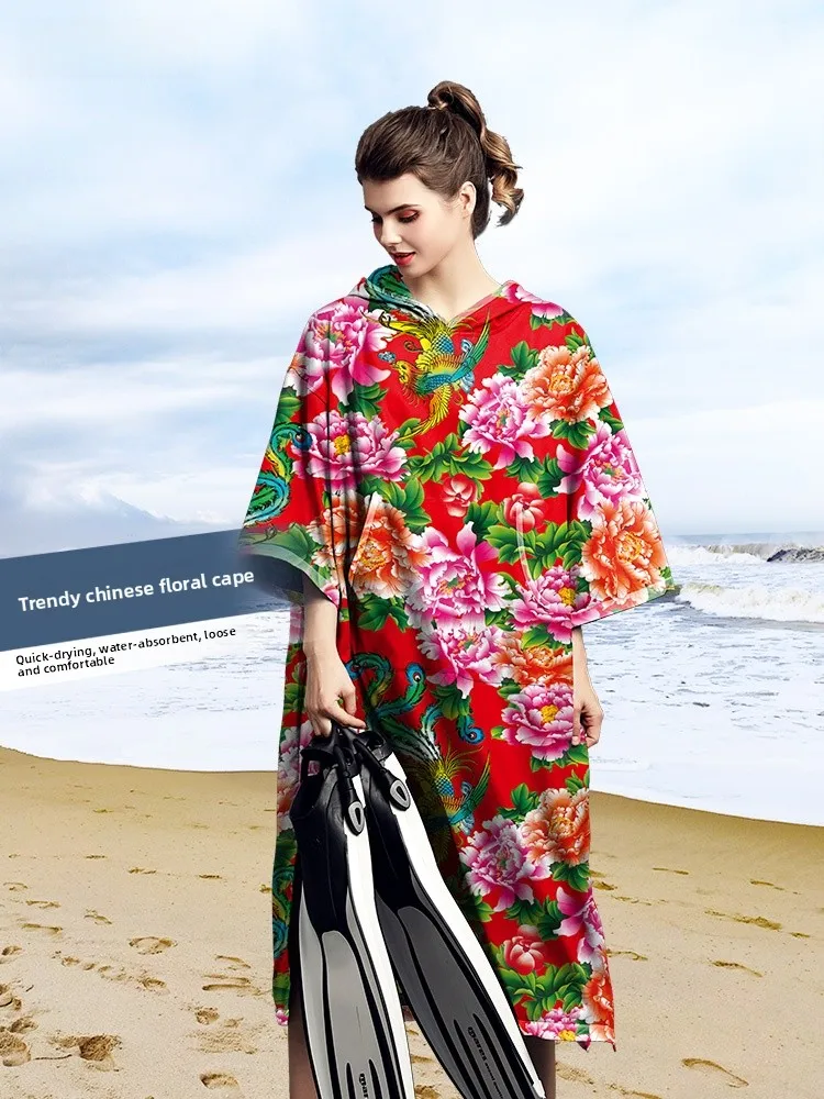 HiTurbo Qui Dry Bath Towel with Hat Diving Swimming Robe Beach Men's Beach Towel Absorbent Cloak Women's Outdoor Clothing