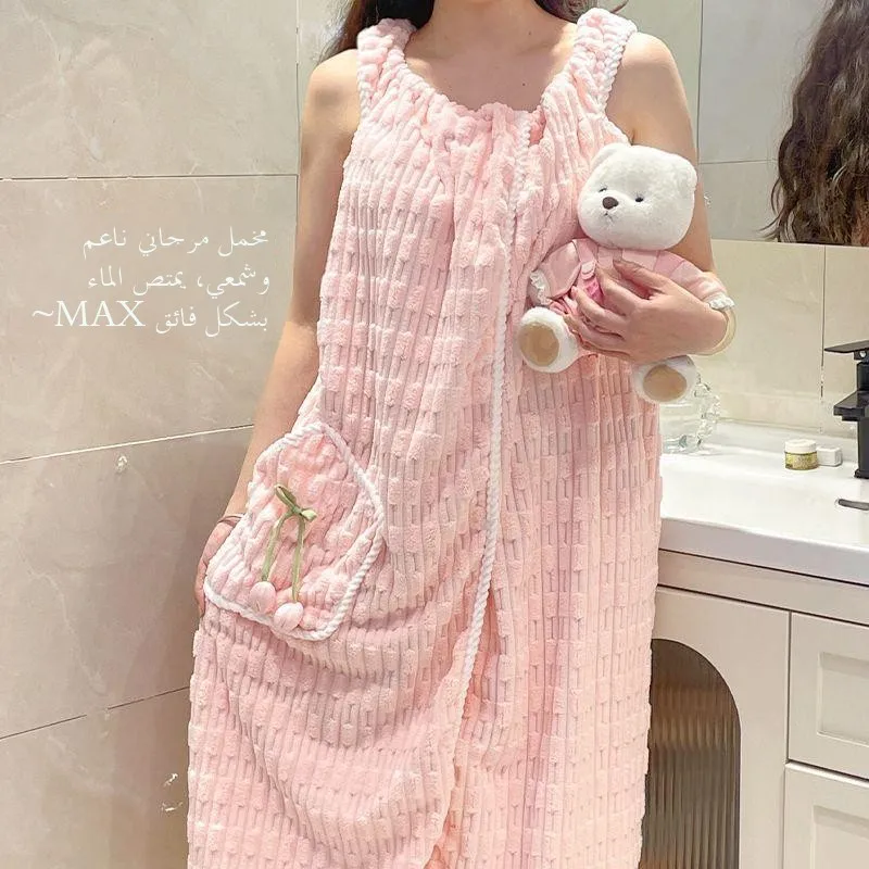 Women's bathrobes, large coral fleece bathrobes, super absorbent bath towels, quick drying, soft skin-friendly nightgowns