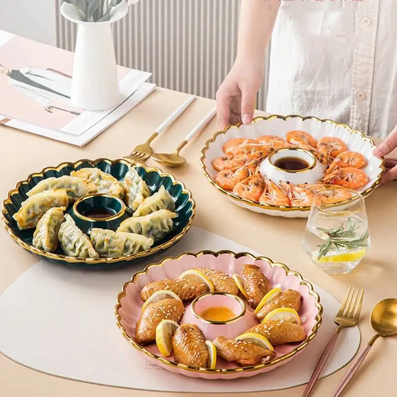 Dumpling Plates Set with Vinegar Saucer Multi-purpose Ceramic Dish for Salad Appetizer French Fries Snack