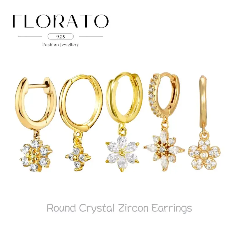 925 Sterling Silver Ear Needle Colorful Crystal Stud Earrings Women's Exquisite Flowers Piercing Earrings Fashion Jewelry Gifts