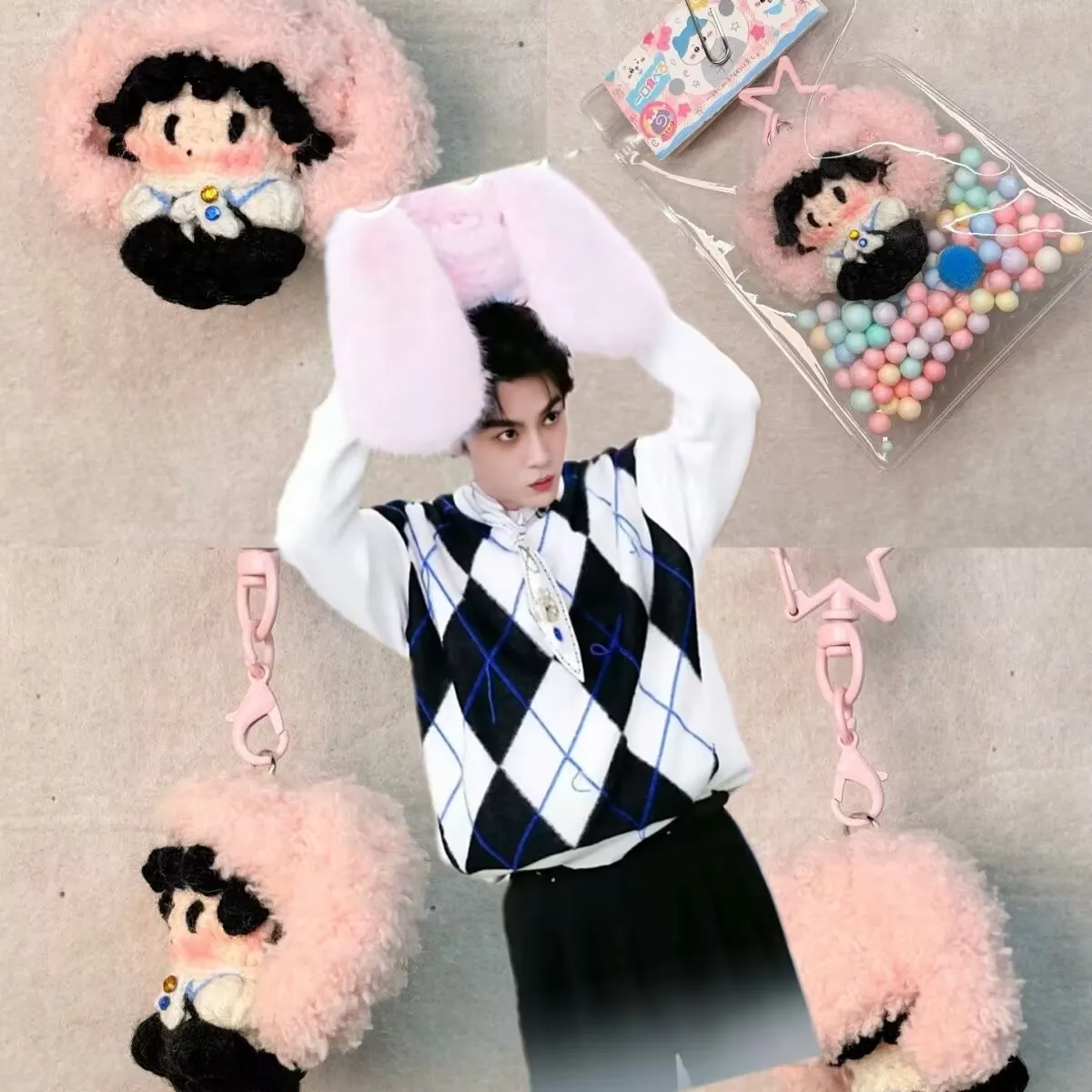 Finished Tian Xuning Rabbit Ear Doll Woolen Hook Weaving Soft Candy Doll Handmade Hook Hook Keychain Pendant