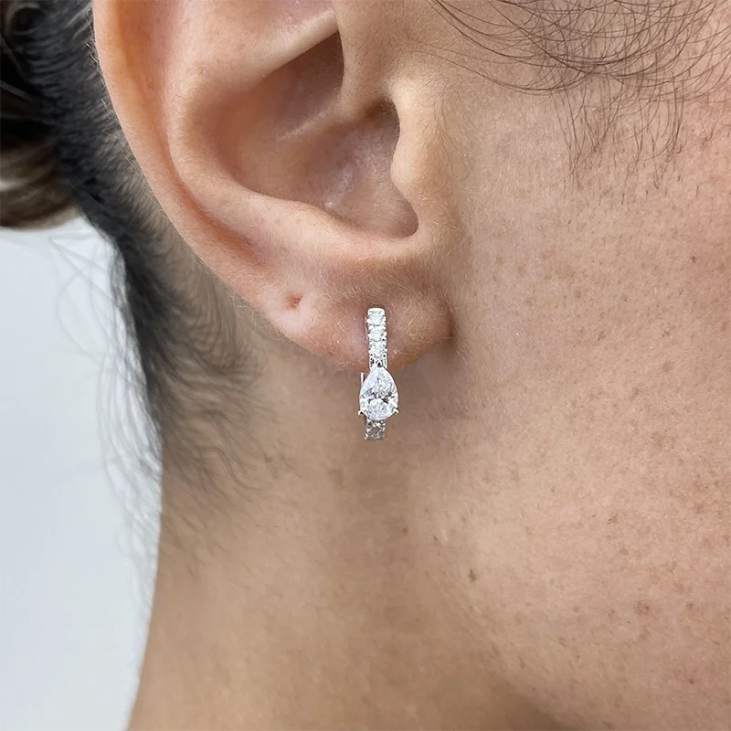 Solid 14K White Gold 1.02ctw DEF/VS VVS Pear&round Cut HPHT Lab Grown Diamond Hoop Earrings Birthday Anniversary Gift