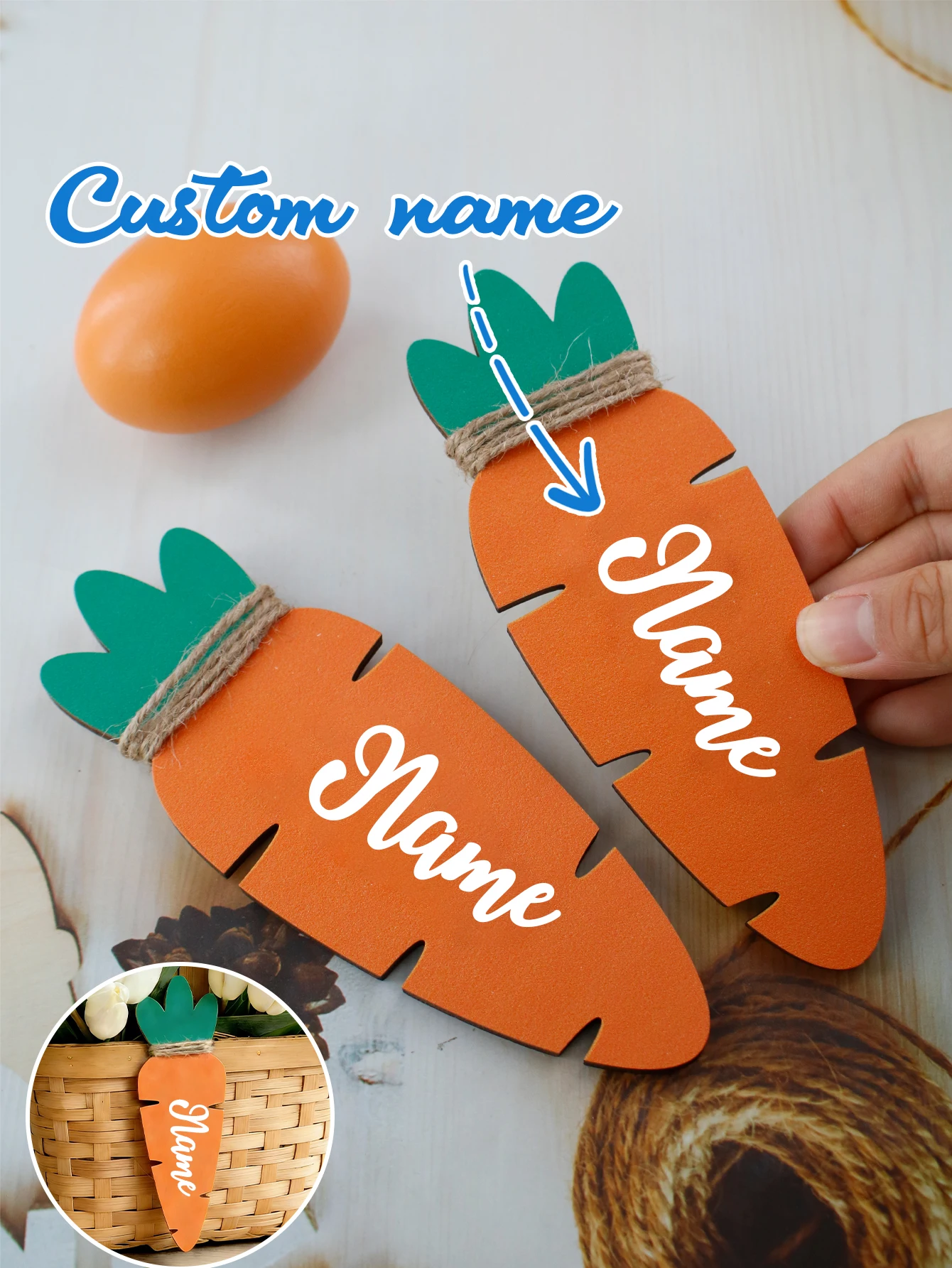 Customized Easter Basket Tags, Carrot Shape Table Decor, Home Decor, Custom Name Carrot Tags, Customizable Easter Table Decor