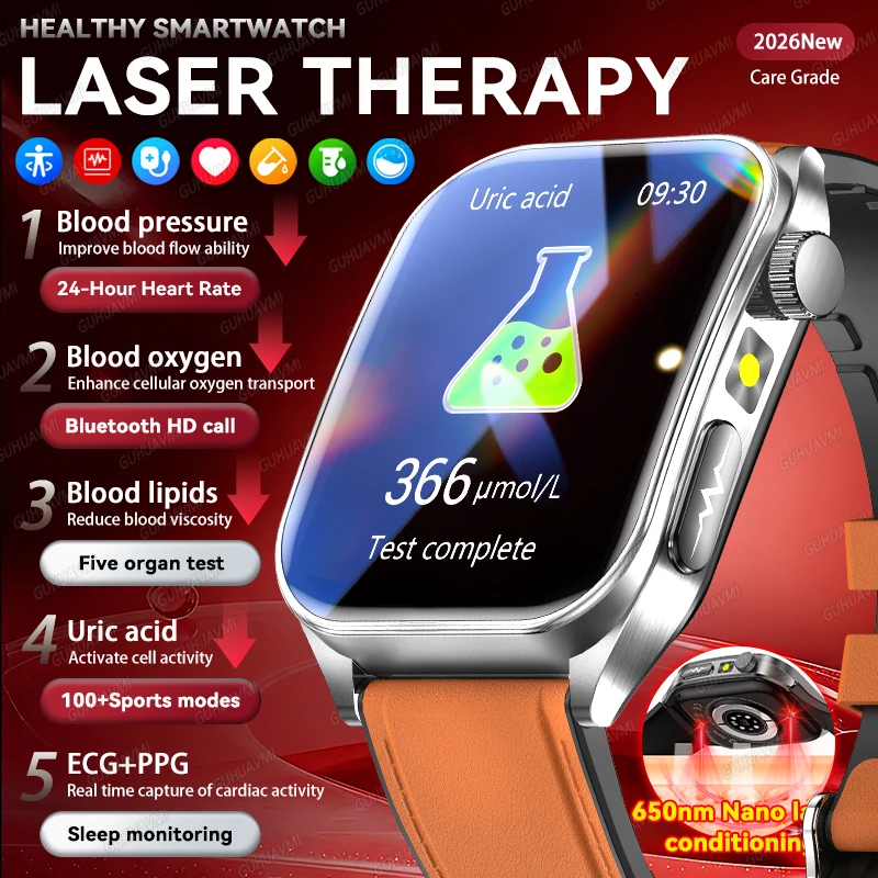 GUHUAVMI New Laser Therapy ECG+PPG Smart Watch Health Monitor Blood Lipids Uric Acid Heart Rate Tracking Monitoring Smartwatches